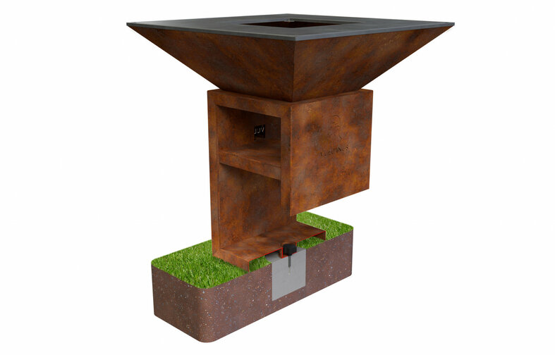 Zabezpečí produkty Vulcanus pred vandalizmom alebo odcudzením. Inštalácia úderovej kotvy je veľmi jednoduchá. Nad pripravený kotvový bod stačí umiestiť gril Vulcanus a zamknúť. Po odomknutí je možné gril alebo butcher premiestiť. Na pôvodnom mieste zostane rovný povrch.