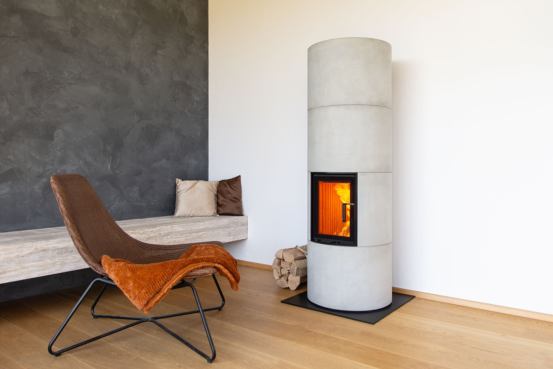 • betónový plášťSpolu s rastom kvality technológie stavieb sa menia aj požiadavky na ich vykurovanie. Súčasné domy s kvalitnou izoláciou si vyžadujú zmenu prístupu. Oproti masívnemu vykurovaciemu výkonu, ktorý sa rýchlo vyčerpá a vyžaduje časté prikladanie, prichádzajú kompaktné akumulačné pece BLOX s odlišnou filozofiou. Obmedzujú tepelný výkon a cielia na lepšiu akumuláciu pri nižšej frekvencii prikladania paliva. Základné modulárne teleso kachlí z pohľadového betónu s čistým výhľadom na oheň využíva rezervu akumulačnej hmoty pri zachovaní kompaktných rozmerov. Akumulačná pec tak hreje skutočne dlho po vyhasnutí. Dôraz je kladený aj na rýchlu montáž a kvalitu prevedenia detailov. Dizajn a funkčnosť sa spája v symbióze jednoduchého tvaru a kvalitného kachliarskeho remesla.