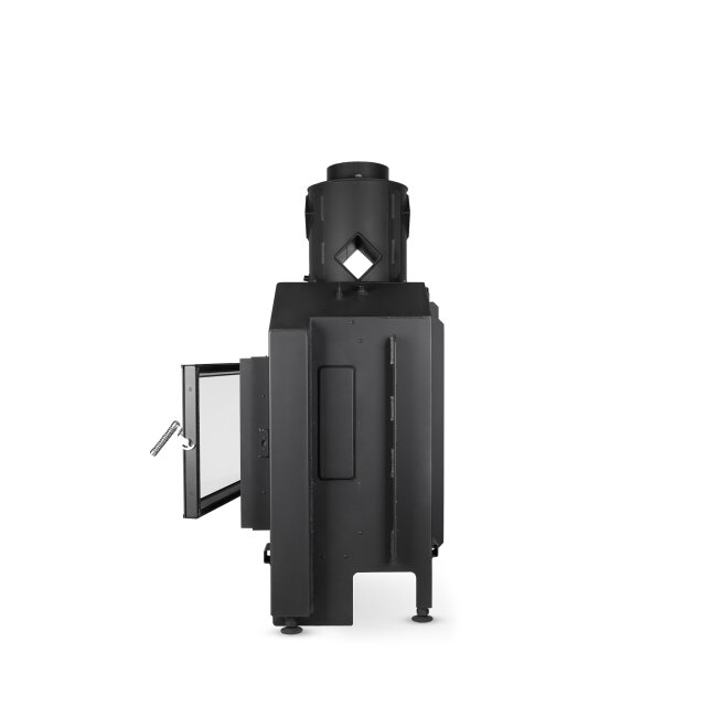 KV HAKA 89/45, otváracie dvierka, oceľový výmenník 90°, čierne, dvojité presklenie, ľavé (pánty vľavo)