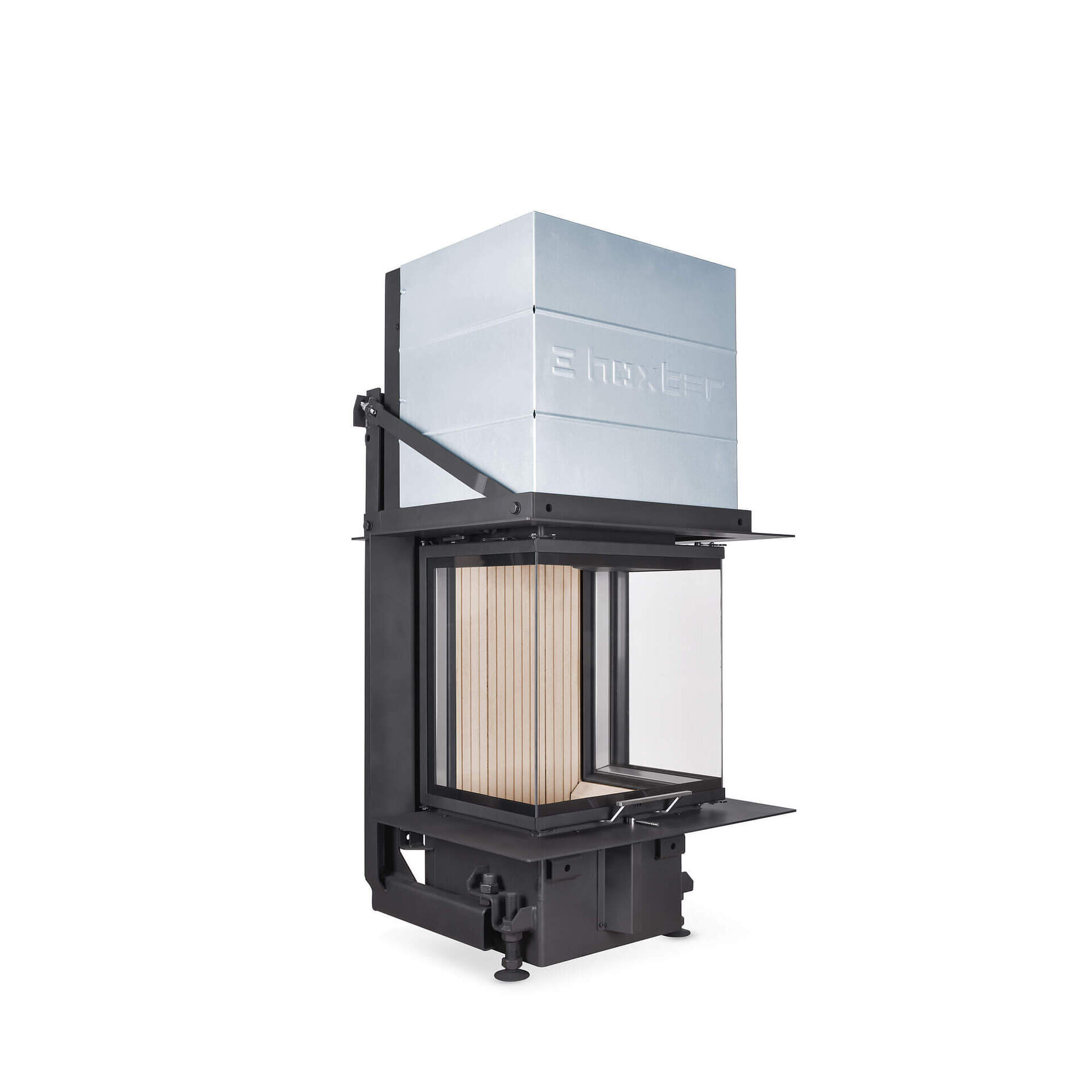 Otvorené dvierka sú vysunuté v komore nad krbovou vložkou a nezasahujú tak do obytného priestoru. Precízny chod dvierok vo vysokých prevádzkových teplotách zaručuje osem ložísk, odolných voči teplotám do 350 ° C. Pohyb ložísk presne a trvalo vymedzujú nerezové lišty, pripevnené na korpuse krbovej vložky. Pri otváraní dvierok dôjde najprv k ich miernemu odtiahnutiu od korpusu, aby sa zabránilo poškodeniu dverného tesnenia trením. Pri otváraní sa dvierka posúvajú nahor vo vzdialenosti niekoľkých milimetrov od krbovej vložky. Dokonalé utesnenie ohniska pri uzavretých dvierkach je zabezpečené pružinovým mechanizmom, ktorý v spodnej polohe pritláča dvierka ku korpusu silou 250 N.
