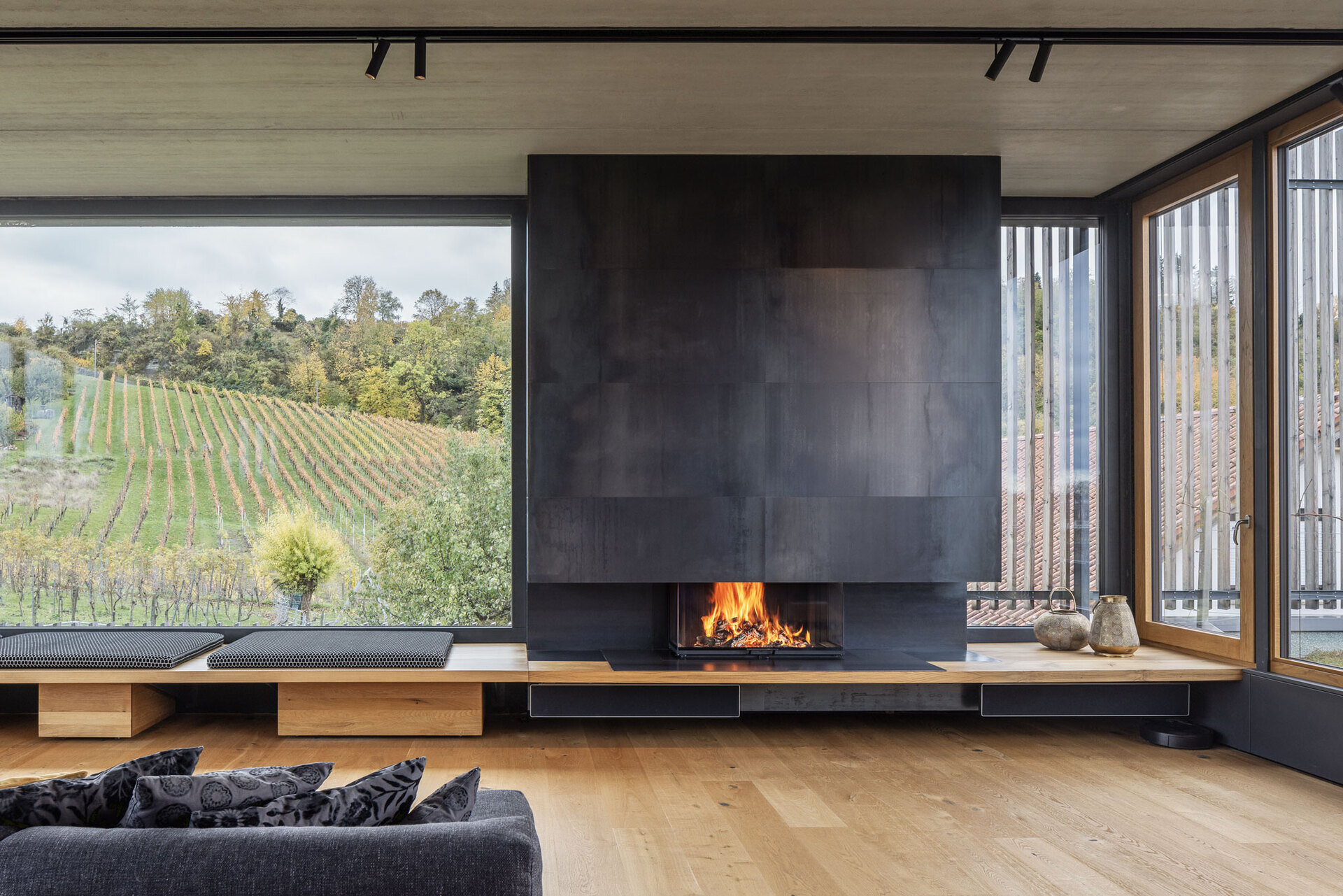 Otvorené dvierka sú vysunuté v komore nad krbovou vložkou a nezasahujú tak do obytného priestoru. Precízny chod dvierok vo vysokých prevádzkových teplotách zaručuje osem ložísk, odolných voči teplotám do 350 ° C. Pohyb ložísk presne a trvalo vymedzujú nerezové lišty, pripevnené na korpuse krbovej vložky. Pri otváraní dvierok dôjde najprv k ich miernemu odtiahnutiu od korpusu, aby sa zabránilo poškodeniu dverného tesnenia trením. Pri otváraní sa dvierka posúvajú nahor vo vzdialenosti niekoľkých milimetrov od krbovej vložky. Dokonalé utesnenie ohniska pri uzavretých dvierkach je zabezpečené pružinovým mechanizmom, ktorý v spodnej polohe pritláča dvierka ku korpusu silou 250 N.