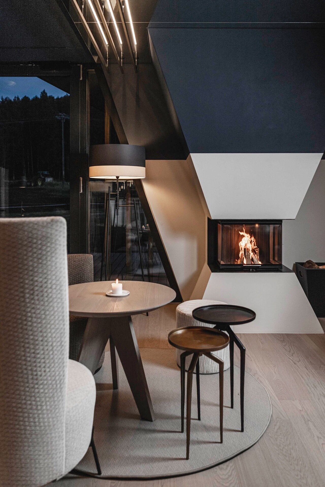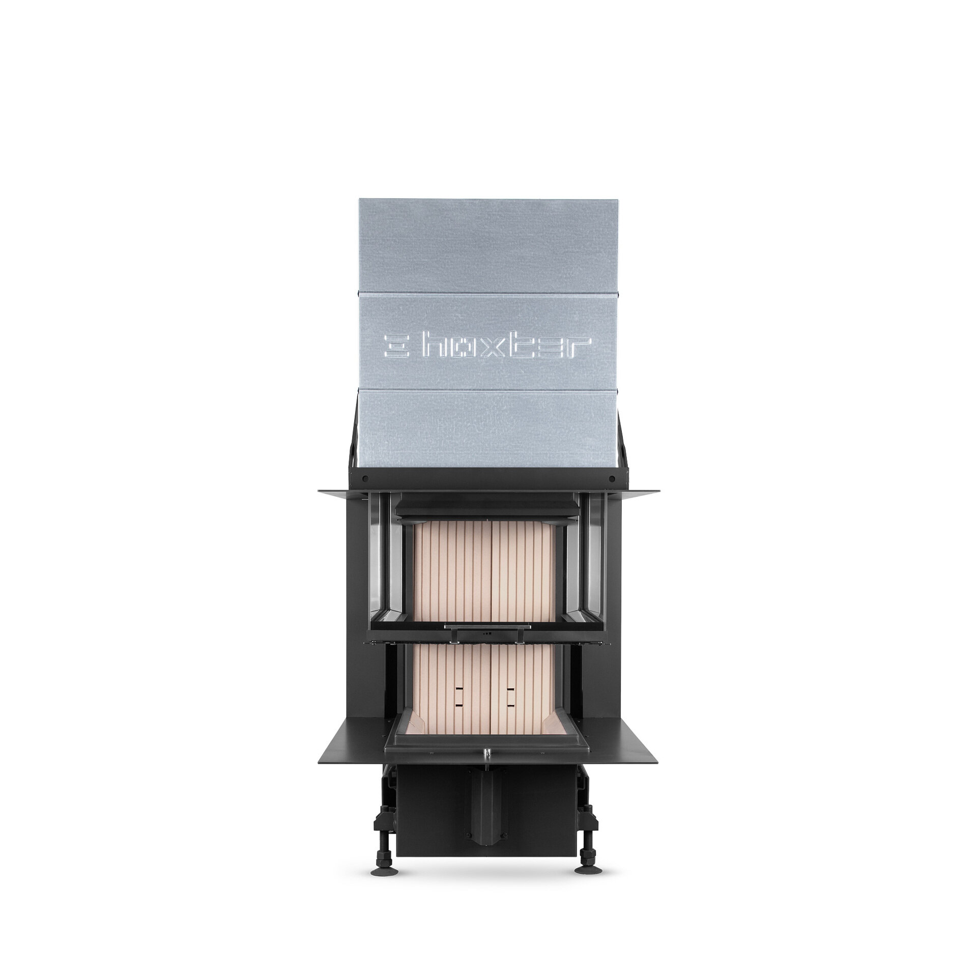 Otvorené dvierka sú vysunuté v komore nad krbovou vložkou a nezasahujú tak do obytného priestoru. Precízny chod dvierok vo vysokých prevádzkových teplotách zaručuje osem ložísk, odolných voči teplotám do 350 ° C. Pohyb ložísk presne a trvalo vymedzujú nerezové lišty, pripevnené na korpuse krbovej vložky. Pri otváraní dvierok dôjde najprv k ich miernemu odtiahnutiu od korpusu, aby sa zabránilo poškodeniu dverného tesnenia trením. Pri otváraní sa dvierka posúvajú nahor vo vzdialenosti niekoľkých milimetrov od krbovej vložky. Dokonalé utesnenie ohniska pri uzavretých dvierkach je zabezpečené pružinovým mechanizmom, ktorý v spodnej polohe pritláča dvierka ku korpusu silou 250 N.