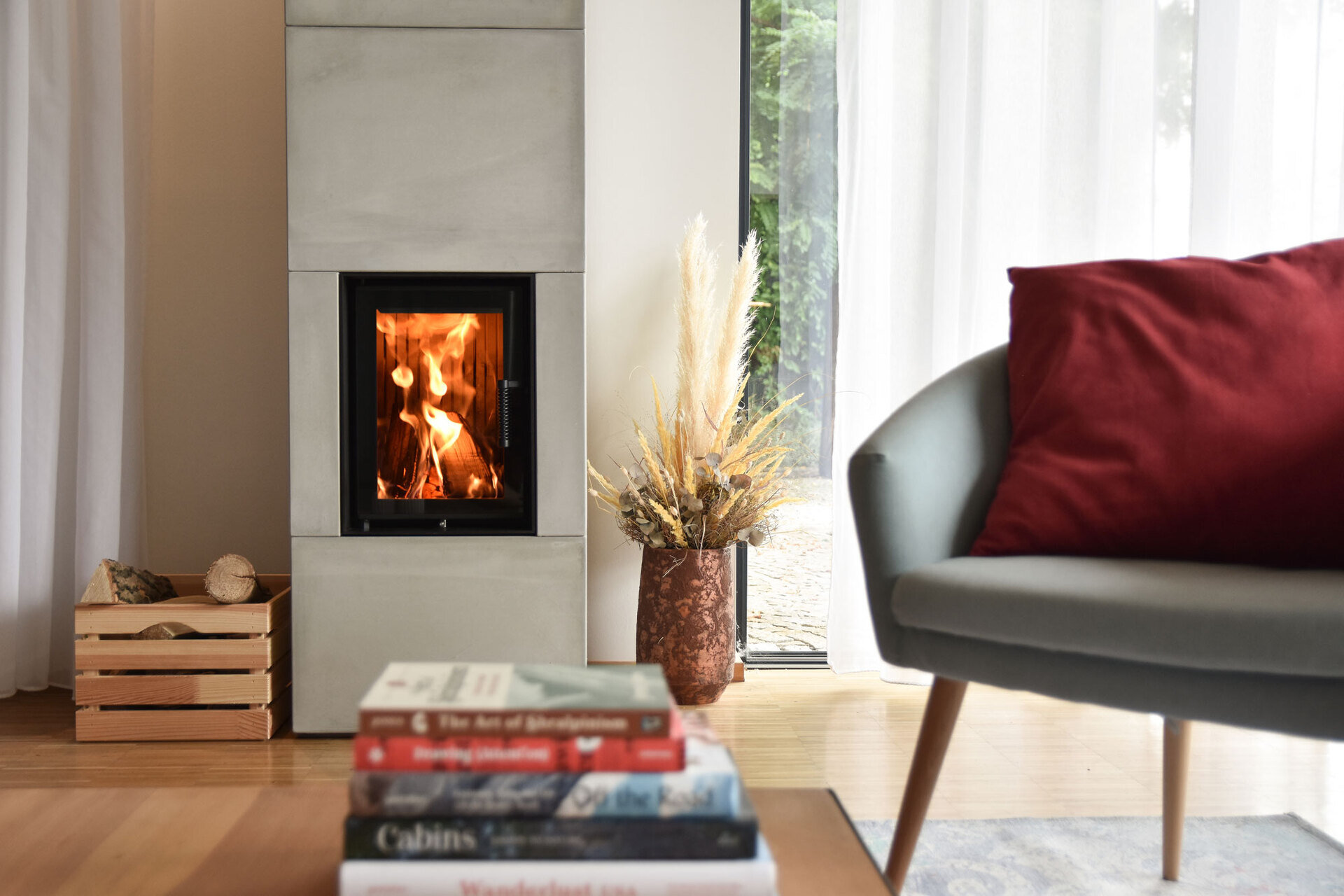 • Betónový plášť s oceľovým podstavcom. Spôsob vykurovania