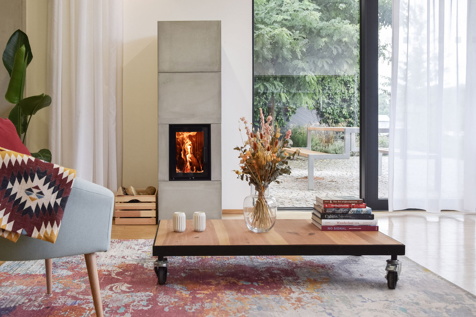 • Betónový plášť s oceľovým podstavcom. Spôsob vykurovania